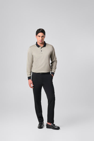 Defined by its Subtle Gold base and deep green stripes, this full-sleeve polo is crafted from premium cotton for a naturally smooth, refined feel. The fly-front placket with a single visible button keeps the look...