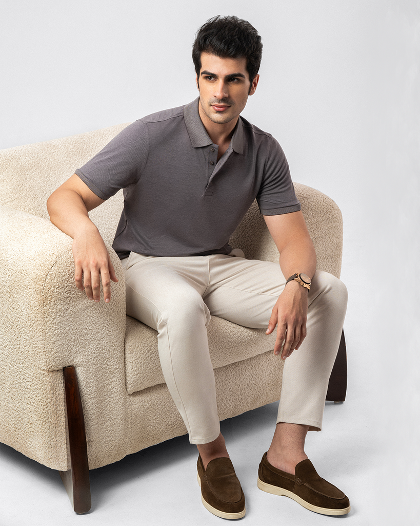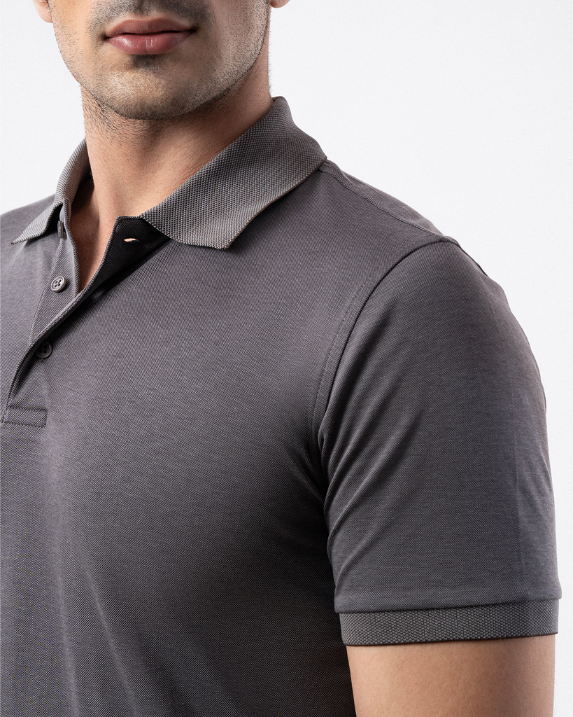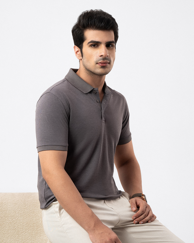 The Dapper Polo Shirt in grey is tailored from a 50% cotton, 50% polyester blend with soft birdeyes interlock fabric. Featuring a subtle self-design on the collar and cuffs, it’s styled with a smart, comfortable fit in a classic half-sleeve, 3-button design.